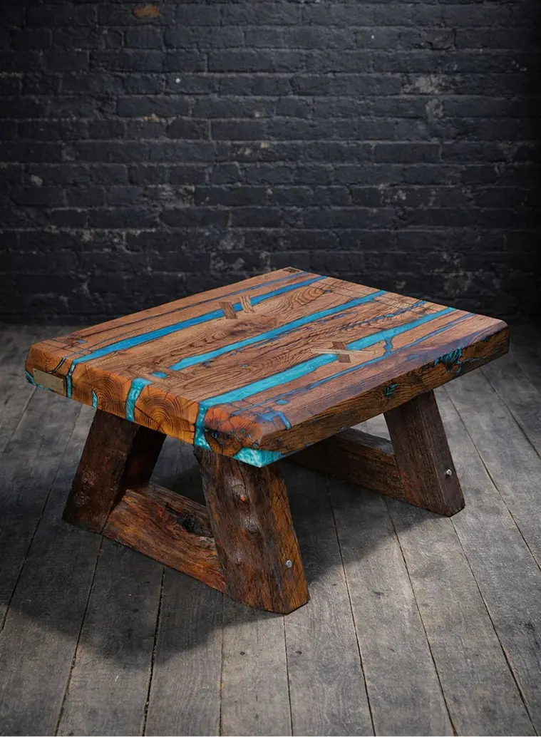 Komad istorije u tvom dnevnom boravku. Masivne grede stare vise od jednog veka, sa kombinacijom tirkizne smole.